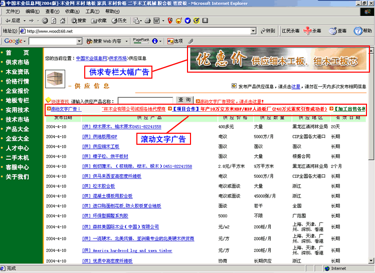 中國木業(yè)信息網(wǎng)供求市場廣告尺寸及位置示范