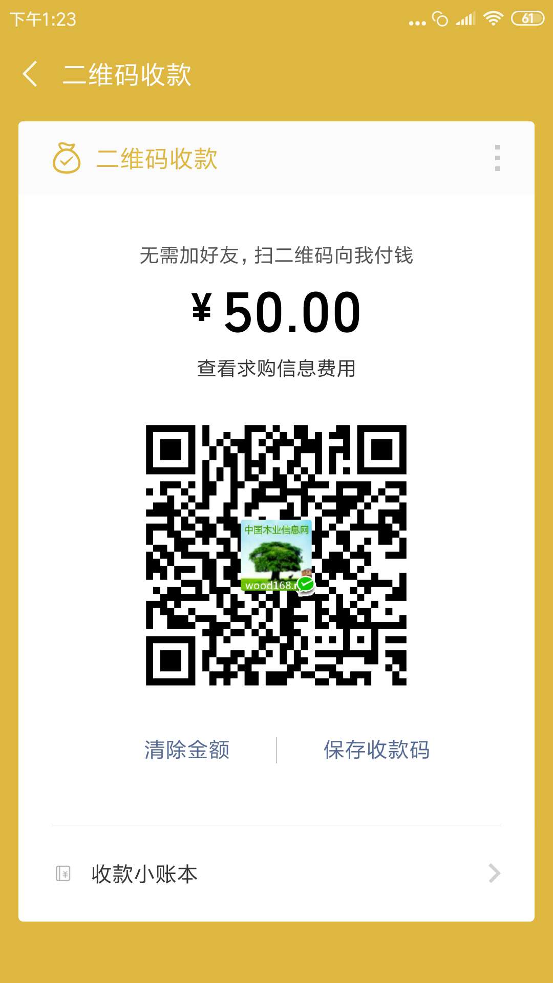 尊敬的木業(yè)信息網(wǎng)用戶,您好: 2001-2016年,十六年來木業(yè)信息網(wǎng)采購(gòu)信息一直都需要升級(jí)到收費(fèi)會(huì)員,年費(fèi)3600元才能查看... 請(qǐng)用微信掃一掃下方的二維碼完成付款,再加木業(yè)信息網(wǎng)(微信號(hào)Wood00003)為好友,把微信支付憑證及下信息拍照發(fā)給我即可馬上把此條采購(gòu)信息的聯(lián)系方式通過微信發(fā)給您... 采購(gòu)信息標(biāo)題:[] 購(gòu)木 ID:109978
