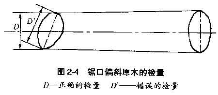 b.檢量鋸口偏斜原木的直徑時,應垂直于原木的縱軸檢量,不允許與截面平行進行檢量(圖2-4)。